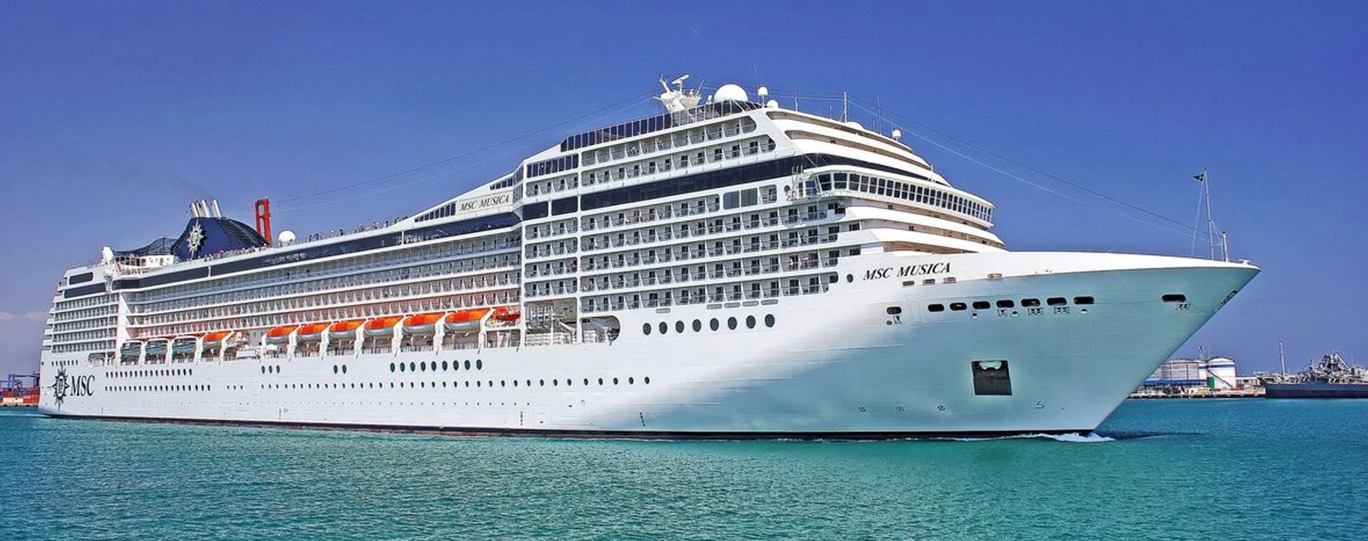 MSC Musica is the first Musica-class cruise ship built in 2006 and operated by MSC Cruises. The vessel has 1,268 passenger cabins which can accommodate 2,550 passengers double occupancy, served by approximately 987 crew members.