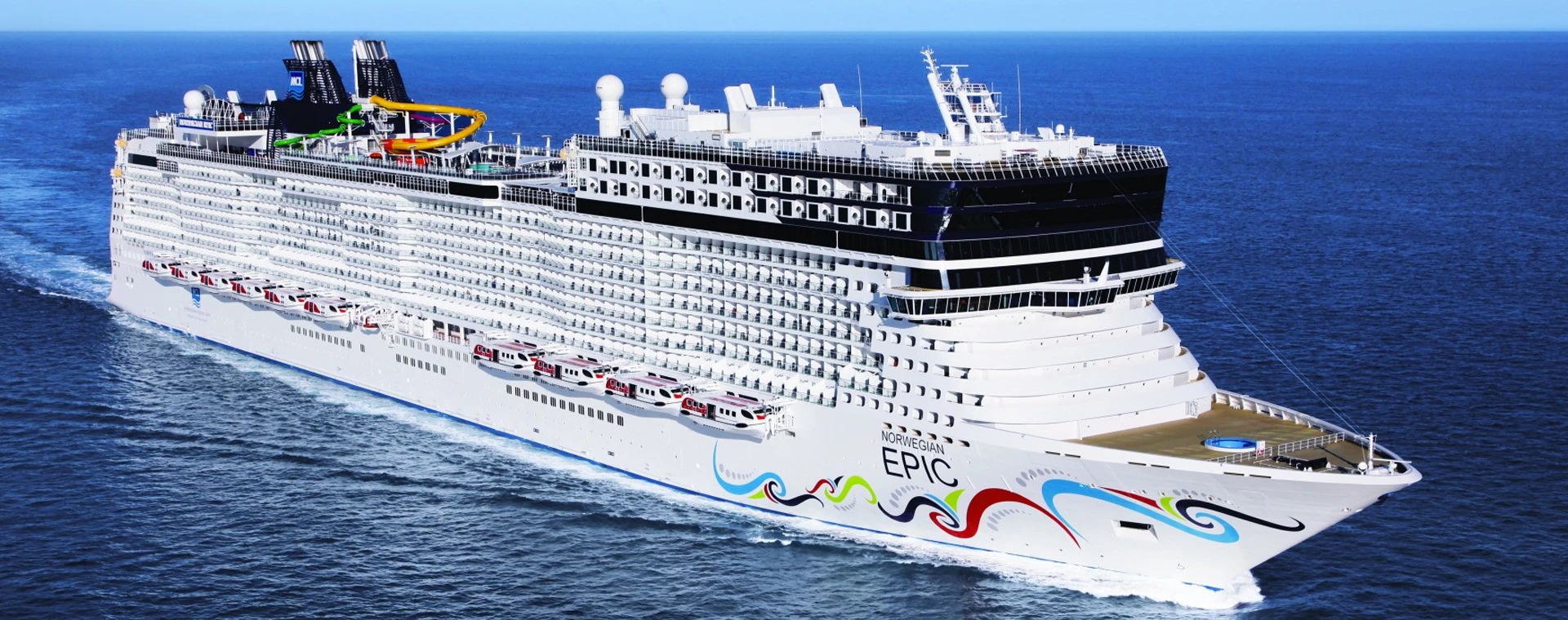 The Norwegian Epic is a contemporary cruise ship operated by Norwegian Cruise Line (NCL) (NCL), built in 2010 and refurbished in 2020, with a capacity for 4,070 passengers. It features an Aqua Park, climbing wall, bowling alley, and an Ice Bar. The ship offers various dining and entertainment options, including award-winning shows and unique bars, and sails to destinations like the Caribbean, Greek Isles, and Mediterranean