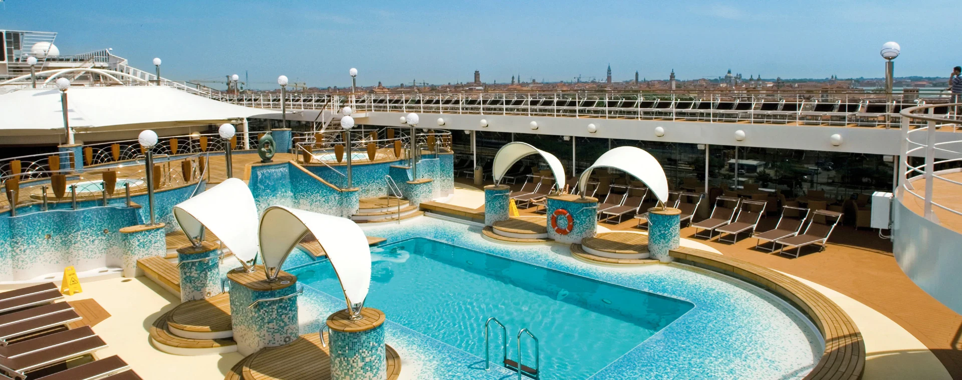 MSC Musica is the first Musica-class cruise ship built in 2006 and operated by MSC Cruises. The vessel has 1,268 passenger cabins which can accommodate 2,550 passengers double occupancy, served by approximately 987 crew members.
